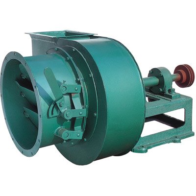 调节门--用以调节风量,轴向装于进风口前,转动灵活,调节范围,由全开到全闭,N08以上采用花瓣式,N06以下采用蝶阀式,为使调节门正常工作,须保持良好的润滑状态,采用澎涨润滑脂。